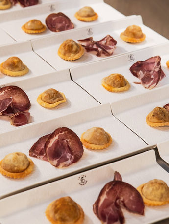 Abbinamento gastronomico selezionato dal nostro enologo per ciascun calice con esclusivi prodotti d'eccellenza della Sardegna.